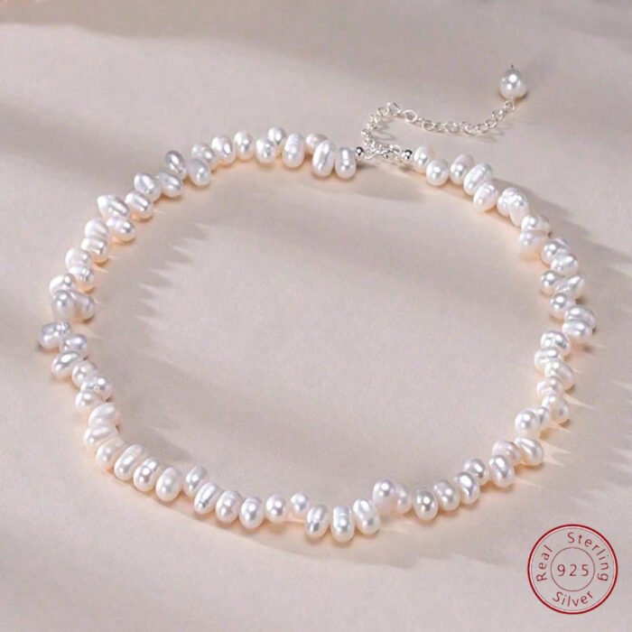 S925 sterling silver natural freshwater baroque pearl necklace for women, with a trendy and elegant style